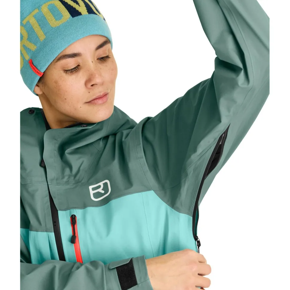 Die Skijacke besitzt eine zweifache verstellbare Sturmkapuze mit verstärktem Schild, die zusätzlichen Schutz vor den Elementen bietet und problemlos unter den Skihelm passt. Der lässige Schnitt und die weitenregulierbaren Ärmel- und Saumabschlüsse sorgen für eine gute Bewegungsfreiheit, während die langen Belüftungsreißverschlüsse an den Unterarmen eine optimale Frischluftzufuhr bei schweißtreibenden Aufstiegen garantieren. Hinzu kommen zwei geräumige Fronttaschen mit Reißverschluss, die großzügigen Stauraum für Kleinkram bieten und zusätzlich mit einer integrierten Handytasche ausgestattet sind. Mit der Women’s 3L Ravine Shell Jacket von Ortovox kann die Wintersportsaison beginnen!