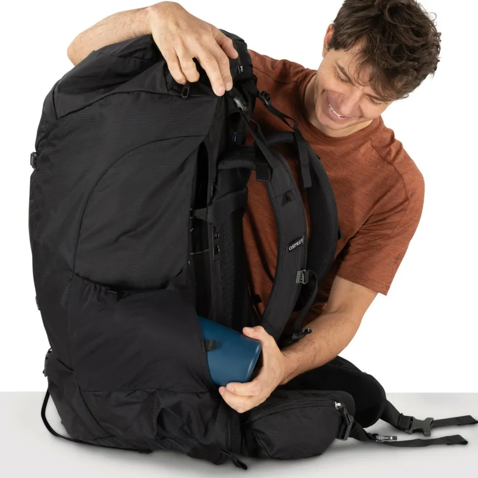 Der Farpoint Trek 75 bringt viele praxisnahe Features mit: das AirCover, das sowohl als Regenhülle als auch als Schutz beim Flug-Check-in dient, ein separates Fach für Trinkblase oder Laptop sowie zahlreiche Kompressionsriemen für stabiles Packen. Zusätzlich ist der Rucksack kompatibel mit Osprey Daypacks, falls Du Dein Gepäck unterwegs aufteilen willst (Daypack nicht im Lieferumfang enthalten). Egal ob ein Backpacking-Abenteuer oder eine lange Trekkingreise auf dem Programm stehen, dieser Rucksack ist auf vielseitige Nutzung ausgelegt und bleibt dabei angenehm robust.