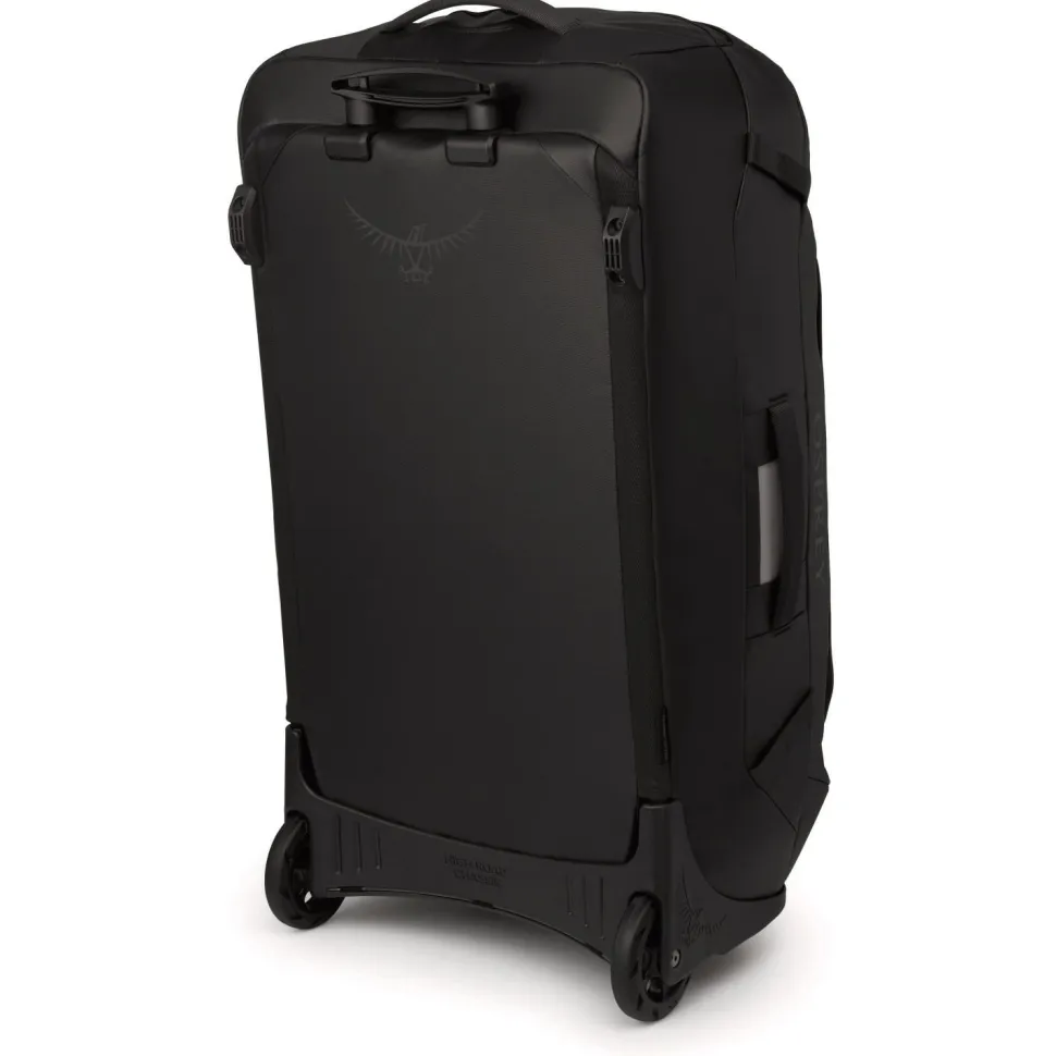 Begib Dich auf eine große Reise mit dem Rolling Transporter 90 von Osprey. Kein Flughafenboden, kein Gepäckband oder schlechtes Wetter kommt dieser Reisetasche in die Quere, durch das stark wasserabweisende und sehr robuste Material sind Deine Habseligkeiten immer sicher und trocken verstaut. Leichtes Ziehen wird ermöglicht durch den ErgoGrip-Griff, den extra großen Rollen und dem HighRoad Gestell, egal welche Untergründe oder Bedingungen, der Rolling Transporter ist ein richtiger Geländewagen unter den Reisetaschen. Die Reisetasche kann wie ein Koffer seitlich geöffnet werden und durch die Meshfächer und den Kompressionsriemen wird ein organisiertes und faltenfreies Packen garantiert. Das extra zugängliche Außenfach bietet Platz für Reisepass und Flugtickets. Perfekt!