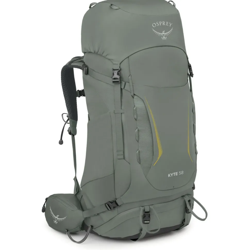 Ganze 58 Liter Stauraum bietet der Women’s Kyte 58 Trekkingrucksack von Osprey. Damit lassen sich auf Tour zwischen 14 und 20 kg Gepäck und Ausrüstung bestens transportieren. Der große Rucksack ist schmal und kompakt geschnitten. So trägt sich die Last optimal und bietet gleichzeitig hervorragende Bewegungsfreiheit und angenehme Ventilation.