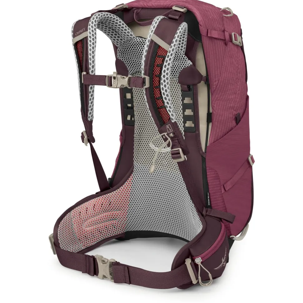 Dein Gepäck für Tageswanderungen verstaust Du praktisch im Wanderrucksack Women’s Sirrus 24 von Osprey! Das Material ist robust und wasserabweisend. Neben einem geräumigen Hauptfach mit viel Stauraum bietet der Rucksack noch mehr Platz in Außentaschen und Mesh-Fächern. Trinkflaschen haben in den beiden seitlichen Fächern Platz. Besonders praktisch ist die Stockhalterung, die Du im Gehen bedienen kannst, sodass Du dafür den Rucksack nicht mal abnehmen musst. Der gut belüftete Rücken sorgt für angenehmen Tragekomfort. Polsterungen an Schultern und am Hüftgurt verhindern Druckstellen. Da Du die Rückenlänge verstellen kannst, findest Du die optimale Passform schnell und unkompliziert. Durchdacht und komfortabel!