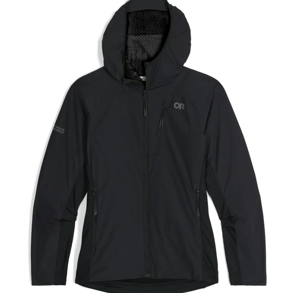 Die Women’s Deviator Hoodie von Outdoor Research ist eine durchdachte Lösung für alle, die bei kühlem Wetter aktiv unterwegs sind – sei es beim Trailrunning, auf Skitouren im Frühling oder beim Wandern in der Übergangszeit. Das Besondere: Die Jacke kombiniert gezielt platzierte Materialien, die genau dort schützen, wo Du es brauchst, und gleichzeitig dort atmen, wo Dein Körper Hitze produziert. Die Vorderseite, Schultern, Ärmel und Kapuze bestehen aus einem wetterfesten 20D-Stretch-Material, während Rücken, Seiten und Unterarme mit einem atmungsaktiven Grid-Fleece ausgestattet sind. Das sorgt für ein angenehmes Körperklima, auch wenn Du mal richtig ins Schwitzen kommst.