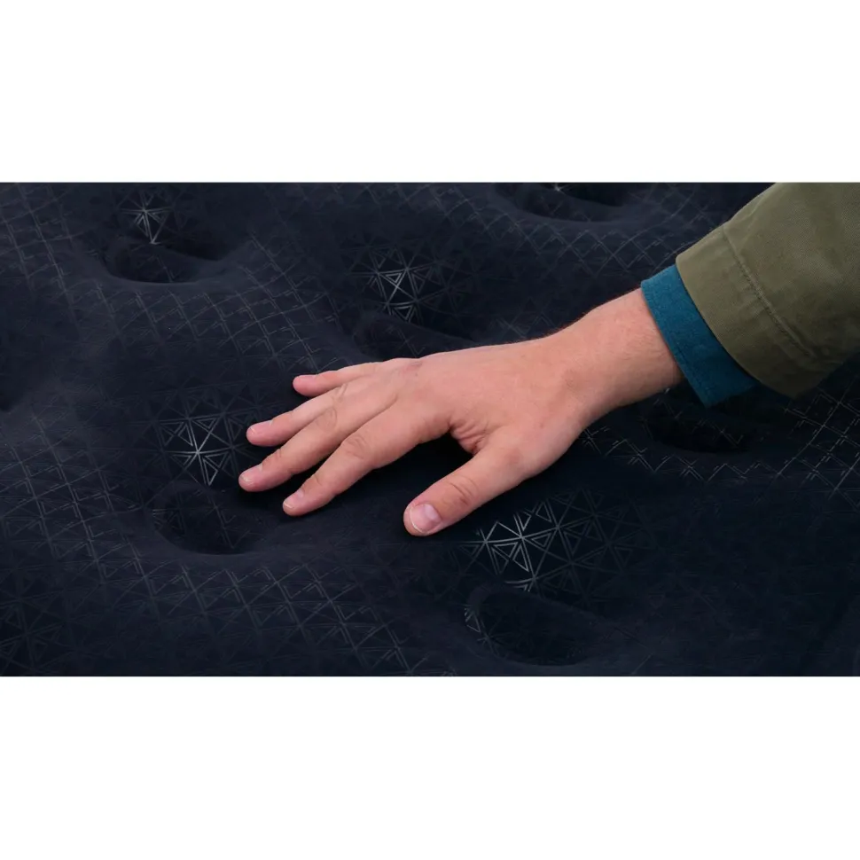 Eine integrierte elektrische 230-V-Pumpe übernimmt das Aufblasen und Ablassen der Luft auf Knopfdruck, sodass das Bett schnell einsatzbereit ist. Das Doppelventil unterstützt die kontrollierte Luftregulierung. Nach der Nutzung lässt sich das Luftbett kompakt zusammenpacken und in der mitgelieferten Tragetasche verstauen.