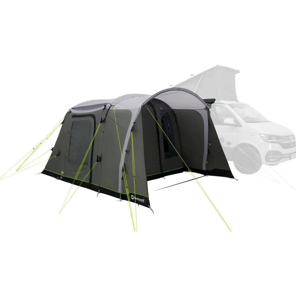 Das Outwell Talladega Air Busvorzelt ist eine robuste und zuverlässige Lösung für Camping-Enthusiast*innen. Gefertigt aus dem Outtex 3000 Select Material, bietet es mit einer Wassersäule von 3.000 mm hervorragenden Schutz vor Regen. Die atmungsaktiven und flammhemmenden Eigenschaften des Materials sorgen für zusätzlichen Komfort und Sicherheit bei wechselnden Wetterbedingungen. Dank des Rigid Air Systems und des Duratec Fiberglasgestänges bleibt das Zelt auch bei Wind stabil, was es zu einem langlebigen Begleiter für Deine Campingabenteuer macht.
