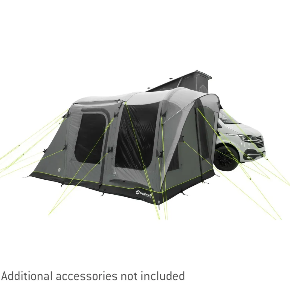 Hochwertige Outwell-Reißverschlüsse laufen zuverlässig und das HookTrack-System erleichtert das Anbringen leichter Ausrüstung oder einer Lampe. Ein optional erhältlicher Innenraum kann als Schlaf- oder Stauraum dienen, wenn Du mehr Struktur wünschst. Der eingenähte Boden schützt vor Feuchtigkeit und die vorgeformten Luftschläuche steigern Stabilität und Wohnkomfort. Beim Aufbau startest Du mit dem Außenzelt – praktisch, wenn das Wetter wechselhaft ist.