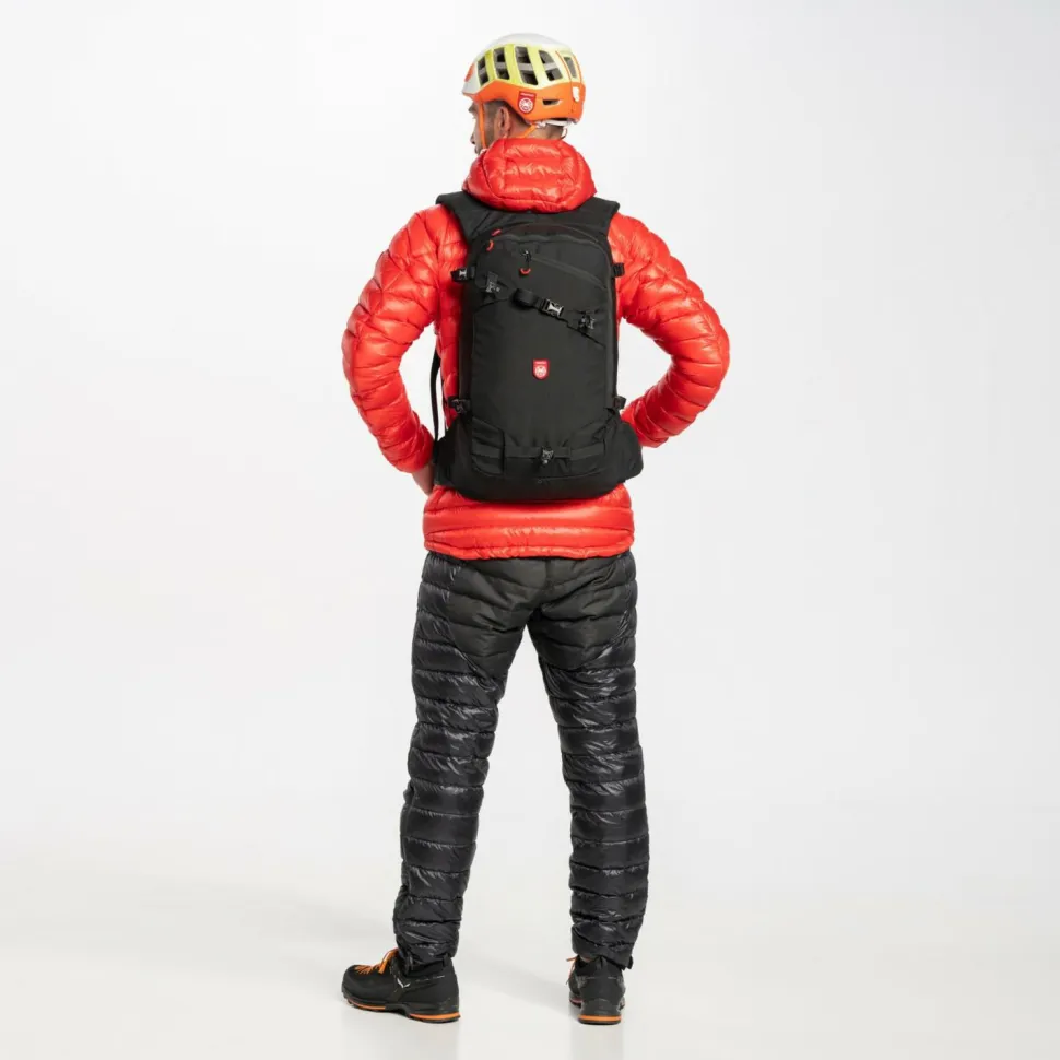 Der Extreme 26 von Pajak hat alles, was ein Skitourenrucksack haben sollte. Er besteht aus wasserdichtem Gewebe, sodass Deine Sachen trocken bleiben. Das großzügige Hauptfach lässt sich vom Rücken aus öffnen. So kommst Du immer gut an Deine Sachen dran. Innen befindet sich außerdem ein Mesh-Fach, in dem Du Kleinigkeiten wie Karten etc. verstauen kannst. In den beiden Reißverschluss-Deckelfächern und dem Reißverschluss-Frontfach kannst Du weitere Sachen wie Deine Lawinenausrüstung, Skibrille etc. separat verstauen. Außen sind zusätzlich Eispickel-/ Stockhalterung sowie Ski-/ Snowboardhalterung angebracht, damit Du alles in oder an Deinem Rucksack unterbekommst. Mit den Kompressionsriemen kannst Du darüber hinaus dafür sorgen, dass das Gewicht Deiner Sachen im Rucksack mehr in Richtung Rücken verlagert wird.