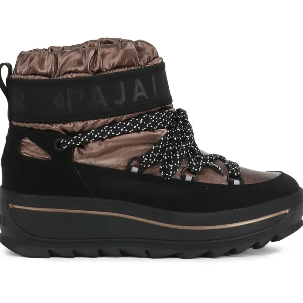 Optisch ist der Galaxy Mini eher zurückhaltend-modern – kein auffälliger Outdoor-Look, sondern ein Design, das auch zur Jeans oder Winterleggings passt. Die Kombination aus Nylon und Kunstleder wirkt hochwertig, ohne übertrieben zu sein. Mit einem Absatz von etwa 4,5 cm und einer Plattformhöhe von rund 3 cm bekommst Du ein bisschen mehr Standhöhe, was nicht nur stylisch aussieht, sondern auch vor Bodenkälte schützt. Insgesamt ist das ein Schuh, der sich gut in Deinen Winter-Alltag einfügt – ob beim Stadtbummel oder auf dem Weg zur Arbeit.