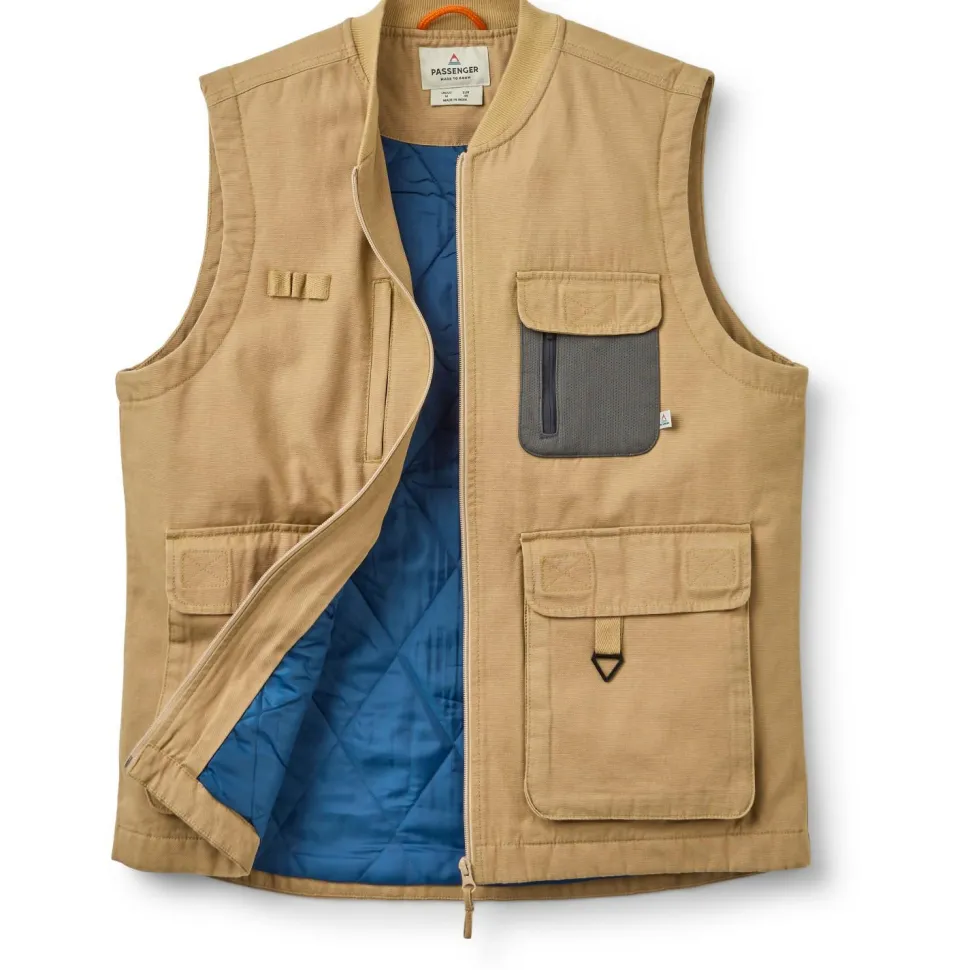 Die Explorers Organic Cotton Canvas Vest von Passenger eignet sich für Abenteurer, die immer abseits der ausgetretenen Pfade auf der Suche nach etwas Spannendem sind. Sie ist atmungsaktiv, schnelltrocknend, stretchy und isolierend. Damit schmiegt sie sich angenehm an Deinen Körper an. Dank der Verarbeitung von recyceltem Polyamid ist sie zudem nachhaltig. Die Kunstfaserweste ist perfekt für die kälteren Tage und Nächte. Die beiden Seitentaschen mit Reißverschluss bieten ausreichend Platz für alles Wichtige wie Geld, Handy oder Schlüssel. Der moderne und sportliche Look kann vielseitig kombiniert werden und fällt sofort ins Auge.