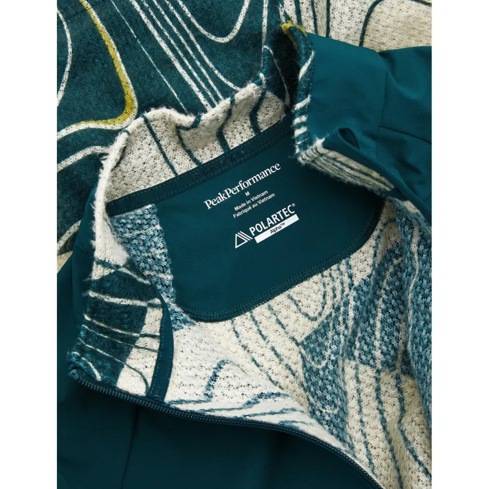 Die Aop Freelight Alpha Half Zip von Peak Performance wurde entwickelt, um Wärme zu speichern und Feuchtigkeit abzuleiten. Sie ist atmungsaktiv und schnelltrocknend. Die Fleecejacke wurde aus Polartec® Alpha Strickgewebe hergestellt. Dieses leitet Feuchtigkeit aktiv ab, und bietet hervorragende Atmungsaktivität bei intensiven Aktivitäten in kalter oder feuchter Umgebung. Die verstärkte Rückenpartie sorgt für zusätzliche Strapazierfähigkeit und Komfort beim Tragen eines Rucksacks über längere Zeiträume. Die Flachnähte gewährleisten ein reibungsloses Tragegefühl. Der moderne und sportliche Look kann vielseitig kombiniert werden und ist schon von Weitem ein echter Hingucker.
