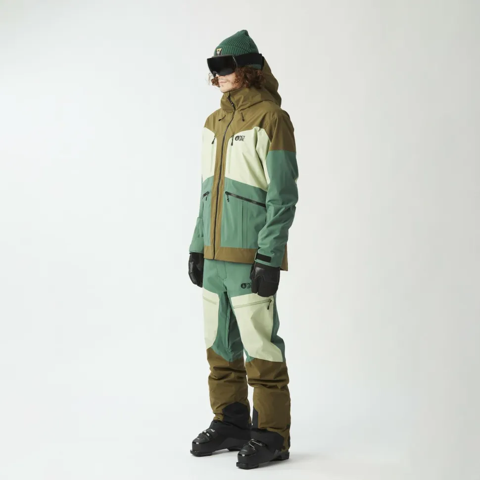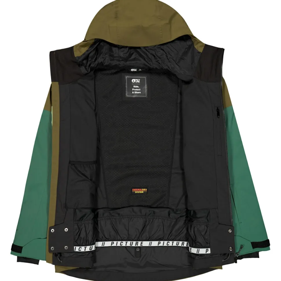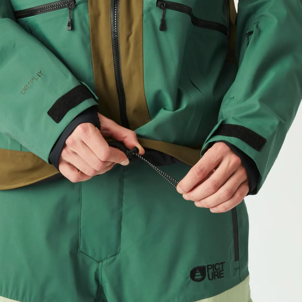 Mit der Naikoon Jacket von Picture bist Du auf der Piste bestens gewappnet: Die beeindruckende Wassersäule von 20.000 mm und komplett getapte Nähte sorgen dafür, dass Du auch bei starkem Schneefall trocken bleibst. Die Teflon EcoElite-Beschichtung lässt Wasser einfach abperlen und bleibt dabei besonders langlebig. Dank winddichter Hardshell-Konstruktion und verstellbarer Kapuze hast Du auch bei eisigem Fahrtwind alles im Griff. Schneefang und Daumenschlaufen halten Schnee draußen – so kannst Du Dich voll auf Dein Ski- oder Snowboard-Abenteuer konzentrieren.