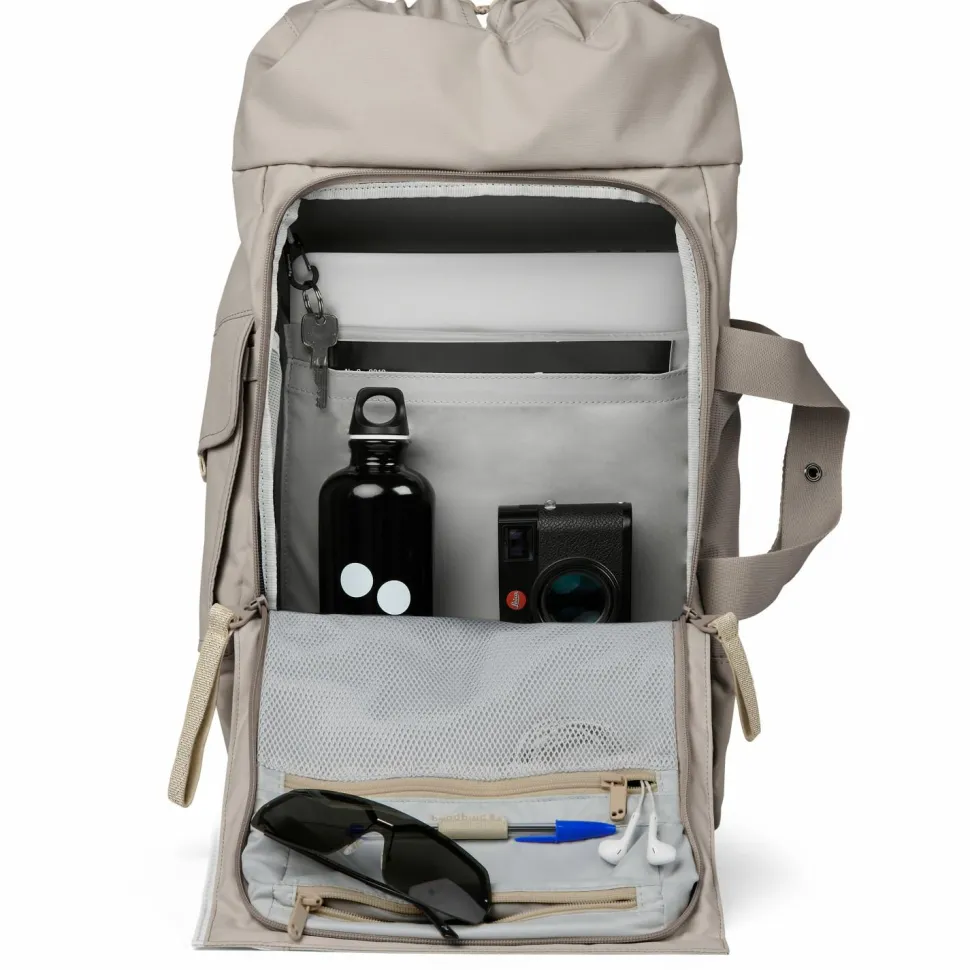 Im Blok Construct 30 Daypack von pinqponq bekommst Du Deine Sachen dank der zahlreichen Fächer gut geordnet unter. Mit der Möglichkeit einer Erweiterung von 30 auf 32 Litern hast Du auch immer genug Stauraum. Er lässt sich von oben, vorne und seitlich öffnen und auch auf verschiedene Weise tragen. So kannst Du ihn wie einen Rucksack aufsetzen oder am Tragegriff nehmen. Die Schulterträger und der Brustgurt sind zudem verstaubar, sodass diese nicht stören, wenn Du die Tasche an einem ihrer Tragegriffe transportieren möchtest. Der Rucksack besteht auf Polyethylen und wurde aus PET-Flaschen recycelt. Dank der PU-Beschichtung ist er außerdem wasserabweisend.