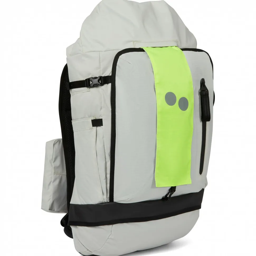 Ein weiteres Highlight des Rucksacks ist der Oberstoff, der aus pre-consumer recyceltem Nylon hergestellt ist. Es handelt sich dabei um reißfesten und strapazierfähigen Stoff. Er hat eine wasserbasierende PU-Beschichtung und ist mit einer PFC-freien, wasser- und schmutzabweisenden DWR-Imprägnierung ausgestattet. Außerdem ist das Innenfutter aus recycelten PET-Flaschen hergestellt.