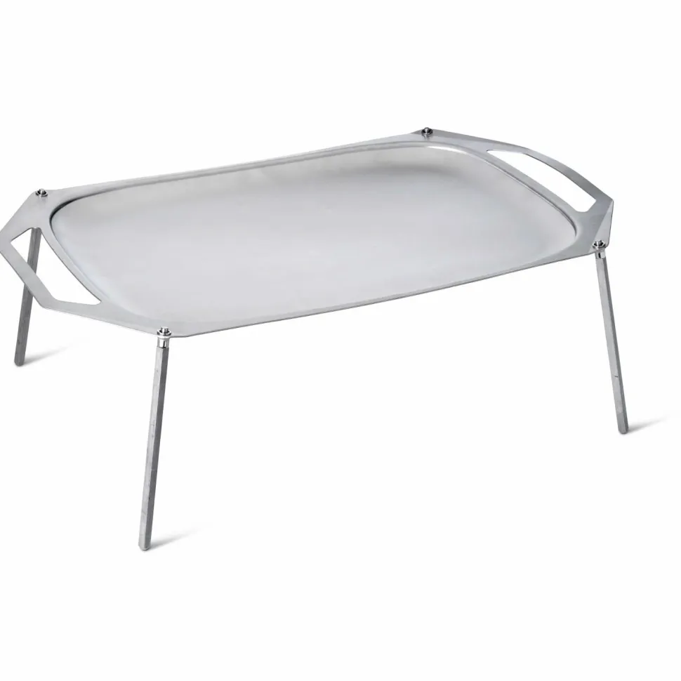 Mit der Primus Openfire Pan Large wird das Zubereiten von Speisen zum genussvollen Freiluft-Erlebnis! Denn die robuste und langlebige Feuerpfanne ist zum Braten und Grillen über offenem Feuer gemacht und ermöglicht Kochen als umfassendes Naturerlebnis! Sie kann auf Camping- und Grillplätzen am genehmigten Lagerfeuer oder auch Zuhause im Garten genutzt werden und bietet aufgrund der speziellen Bauweise eine gute Wärmeübertragung. Sie hat nämlich einen Aluminiumkern, ist außen aber aus Edelstahl gefertigt. Die Konstruktion ist so aufwendig wie sinnvoll, denn es ergibt sich eine Pfanne, die leichter und besser wärmeleitend ist als reiner Stahl, aber hygienisch und widerstandsfähig gegen Abrieb und Korrosion wie Edelstahl. Gute Voraussetzungen zum häufigen und langjährigen Einsatz im Freien! Die schrägen und kantigen Beine lassen sich einfach aufschrauben und bieten guten Halt. Die Gewinde sind gegen Fett und Ruß geschützt und halten so lange, ohne zu verschleißen. Mit den seitlichen Griffen kann die Pfanne passend über dem Feuer platziert werden. Die Wölbung ermöglicht leichtes Wenden von Grillgut und verhindert, dass allzu schnell etwas herunterfällt. Neuen Spaß am Kochen entdecken mit der Primus Openfire Pan Large für offenes Feuer!