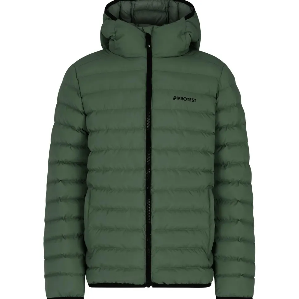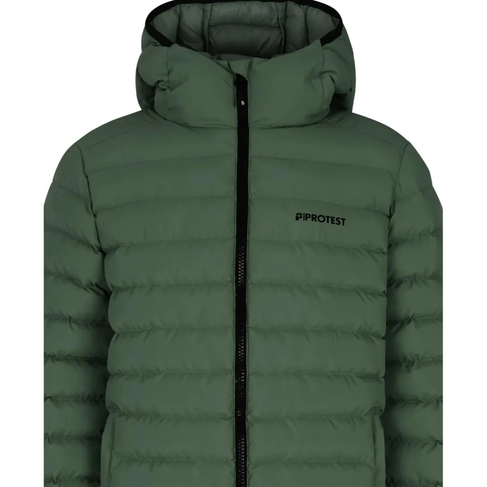 Mit der Kid’s PRTYates Outerwear Pufferjacket von Protest gibt’s eine wärmende Jacke für kalte Tage. Diese Kunstfaserjacke punktet vor allem durch ihren hohen Komfort und den bequemen Schnitt. Das Außenmaterial ist darüber hinaus wasserabweisend, wodurch leichter Niederschlag kein Problem darstellt. Im Inneren der Jacke sorgt außerdem eine Kunstfaserfüllung dafür, dass die Körperwärme zuverlässig gehalten wird. Praktisch ist dabei auch die ebenfalls wattierte Kapuze, die bei Bedarf für zusätzlichen Schutz sorgt.