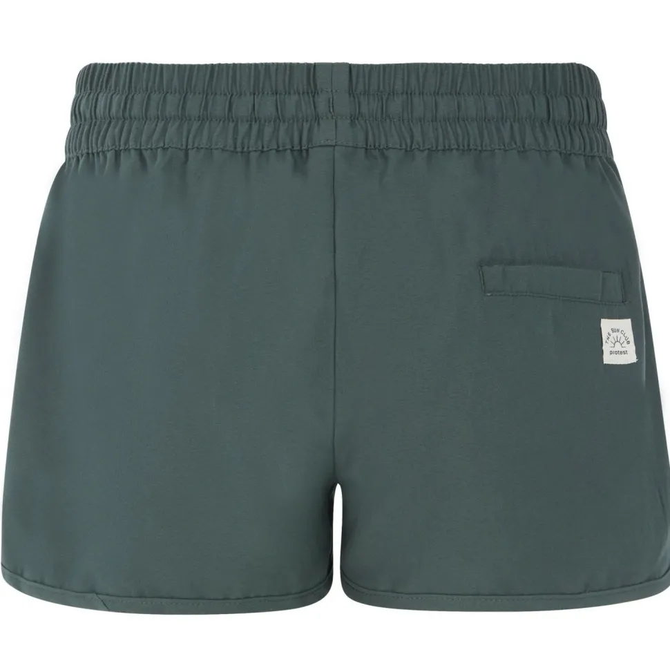 Die Women’s PRTTenerife Beachshort von Protest kann beim Beachlifestyle perfekt mithalten!Knackig und kurz und mit Kordelzug am elastischen Bund macht die sommerliche Shorts eine top Figur. Die Beinabschlüsse und Seiten sind mit einem Spitzenband aufgepeppt und eine Gesäßtasche mit Klettverschluss bietet Platz für Kleinkrams. Eine coole Badeshorts für entspannteTage am Strand und in der City.