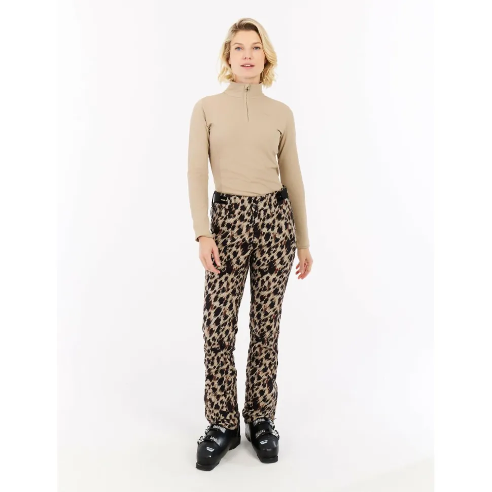 Mit den Reißverschlüssen an den Beinenden ermöglicht sie Dir, die Skischuhe bequem unter der Skihose zu tragen. Die beiden Seitentaschen mit Reißverschluss eignen sich, um wichtige Dinge bequem und schnell zu verstauen. Damit kannst Du Dich voll und ganz auf die nächste Abfahrt konzentrieren. Der verspielte Look der Skihose fällt schon von Weitem ins Auge.