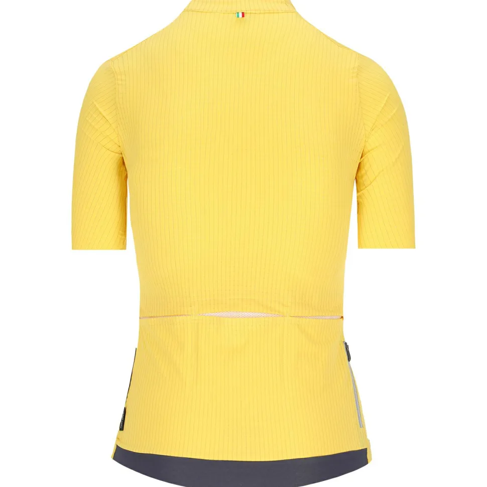 Mit seinem einzigartigen Material und minimalem Einsatz von Nähten bietet das Q36.5 Women’s Dottore Pro Jersey aero-optimierte Performance. Das Trikot besteht aus dem schnelltrocknenden, dreidimensionales Dottore Pro Gewebe, das auch bei harten Tagen im Sattel für eine effiziente Temperaturregulierung sorgt. Die spezielle Konstruktion verwendet proprietäres Gewebe, das Silberfäden in das Material einwebt, was den Feuchtigkeitstransfer verbessert. Das verwendete Material transportiert Feuchtigkeit 50 Prozent schneller als jedes andere Polyestergewebe. Die Zugabe von Silberfäden bietet zudem antistatische Eigenschaften, welche der Muskelermüdung entgegenwirken.