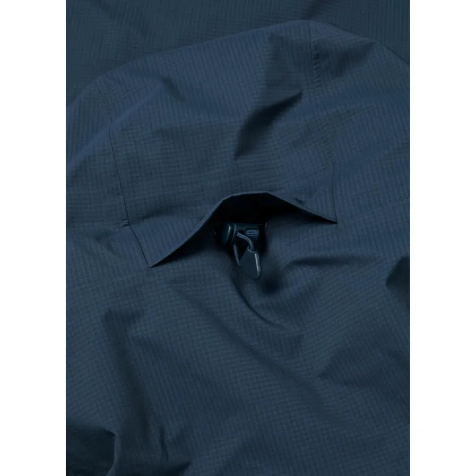 Die Regenjacke besteht aus einem geschmeidigen Polyamid-Material, das sich sehr gut komprimieren lässt. Daher kannst Du sie problemlos im Rucksack verstauen und bei Bedarf schnell wieder hervorholen. Außerdem hat sie zwei praktische Fronttaschen mit Reißverschluss und eine eng anliegende, verstellbare Kapuze, die Deine Haare zuverlässig vor Regen schützt.