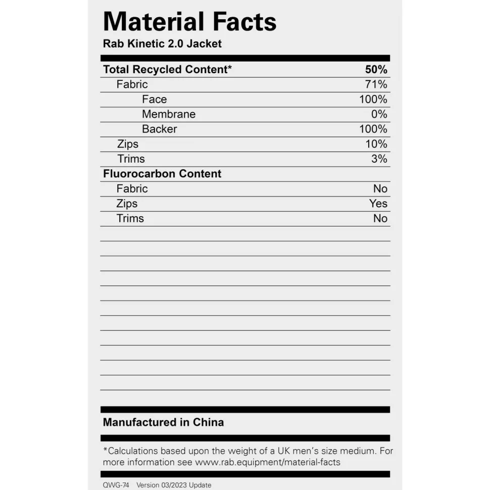 Die mehrfach verstellbare, eng anliegende Kapuze ist darauf ausgerichtet, unter dem Helm getragen zu werden. Die Kinetic 2.0 Jacket von Rab ist rundum mit wasserabweisenden YKK-Reißverschlüssen ausgestattet. Verstellbare Ärmelbündchen und ein mittels Kordelzug verstellbarer Saum dichten das gute Stück gegen Nässe und Kälte ab.