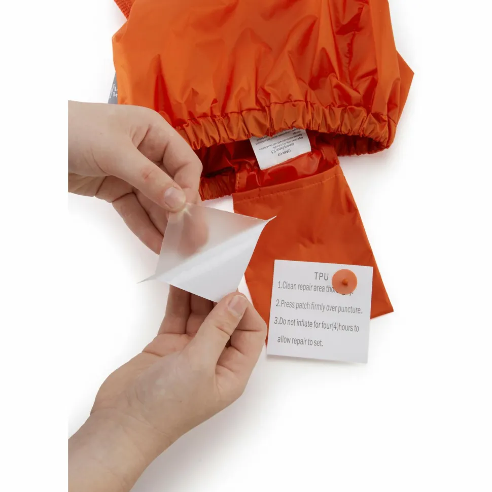 Im Lieferumfang enthalten ist ein Pumpsack, mit dem Du die Matte schnell und hygienisch aufpumpst. Außerdem sind ein aufrollbarer Packsack und ein Reparaturset dabei.