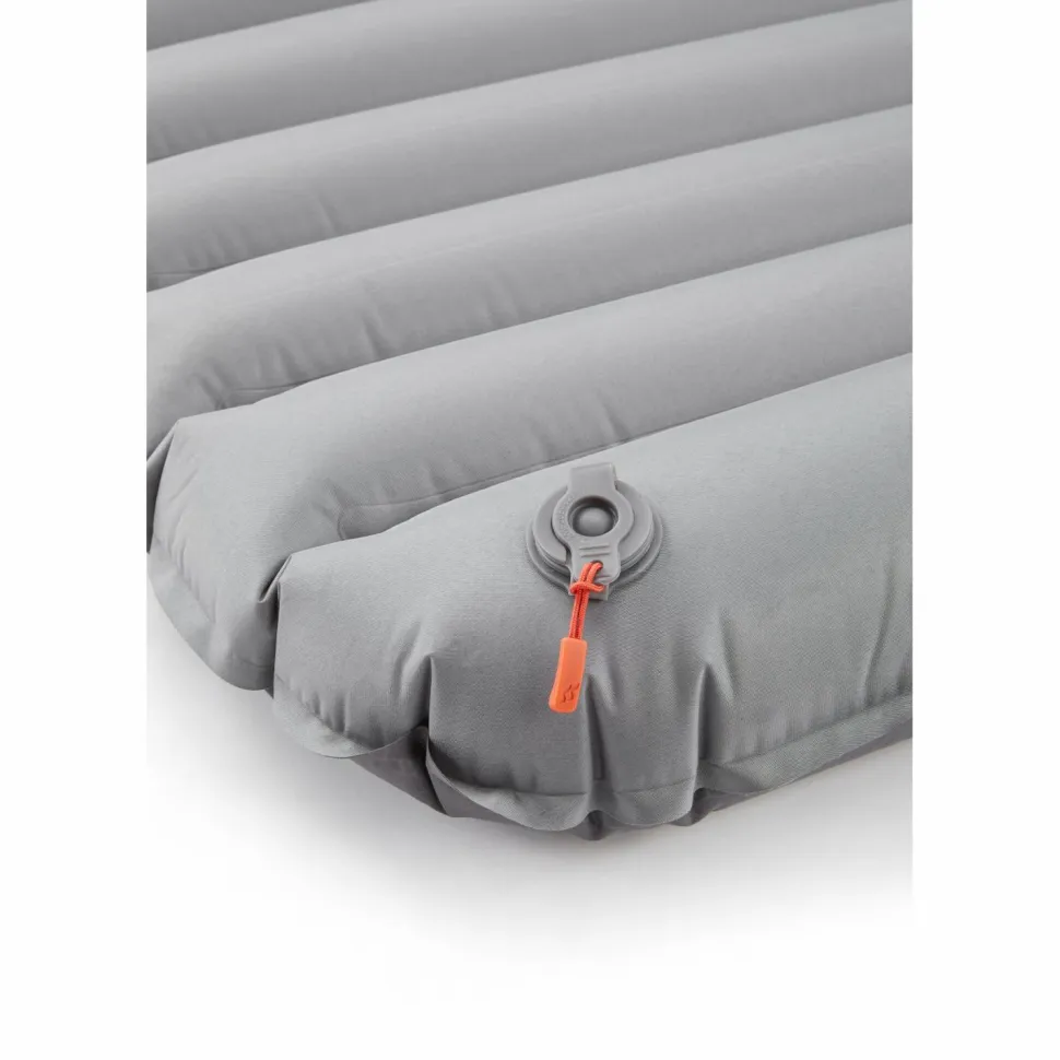 Damit Du nicht auskühlst, wenn es nachts kalt wird, verwendet Rab eine Stratus-R-Isolation aus recyceltem Polyester. Das Material dämmt nicht nur sehr effektiv, sondern zeichnet sich überdies durch ein geringes Gewicht aus. Wenn Du die Luft herauslässt, kannst Du die Matte auf ein gut zu verstauendes Maß komprimieren. Sie eignet sich exzellent für Unternehmungen mit viel Gepäck.