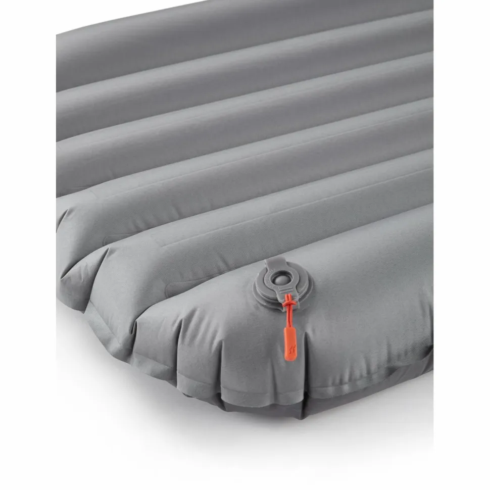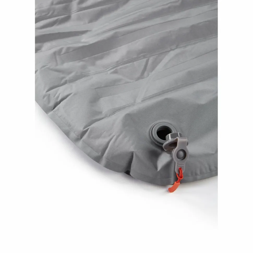 Damit Du nicht auskühlst, wenn nachts die Temperaturen fallen, benutzt Rab eine Stratus-R-Isolation aus recyceltem Polyester. Diese zeichnet sich durch eine exzellente Wärmedämmung aus. Mit einem R-Wert von 5,5 hält sie Dich bis zu Temperaturen von -5 Grad Celsius warm. Das Außenmaterial ist ebenfalls aus Polyester. Es ist robust und gleichzeitig leicht. Ohne Luftfüllung lässt sich die Matte gut komprimieren und verstauen. Daher eignet sich die Matte bestens für Unternehmungen mit viel Gepäck.