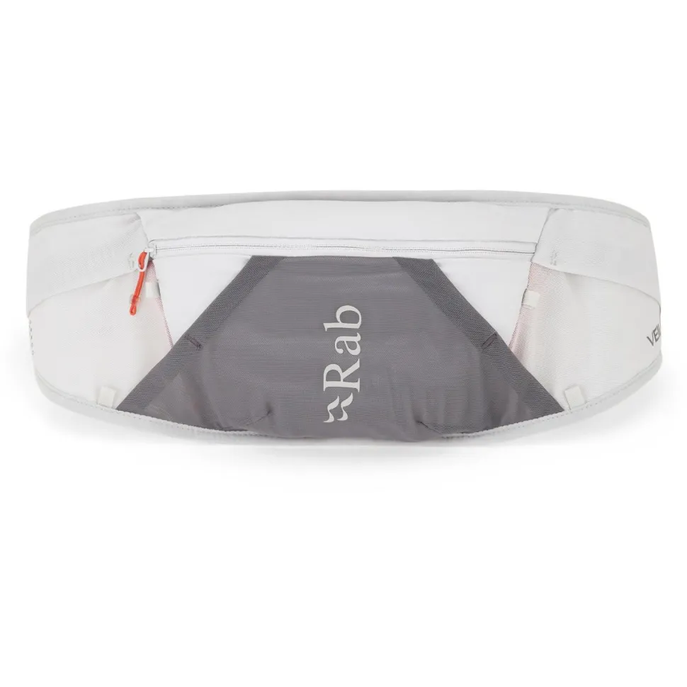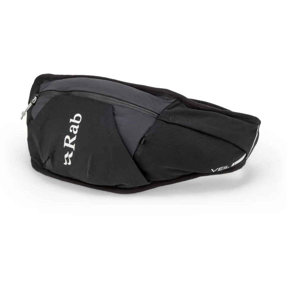 Der Veil 1 von Rab ist eine für den Laufsport optimierte Hüfttasche. Sie ist ultraleicht und auf das Nötigste reduziert. Besonders gut eignet sie sich für kurze, bergige Trails. Das Reißverschluss-Hauptfache bietet mit einem Volumen von einem Liter Platz für Gels, Smartphone und Snacks. In einer zusätzlichen Sicherheitstasche verstaust Du wichtige Kleinigkeiten. Das Material ist atmungsaktiv und im Gurt mit Belüftungslöchern versehen. So bleibt die Hüfttasche auch auf schweißtreibenden Passagen bequem. Auf der Vorderseite befinden sich drei elastische Fächer und vier kleine Schlaufen für zusätzliches Gepäck.