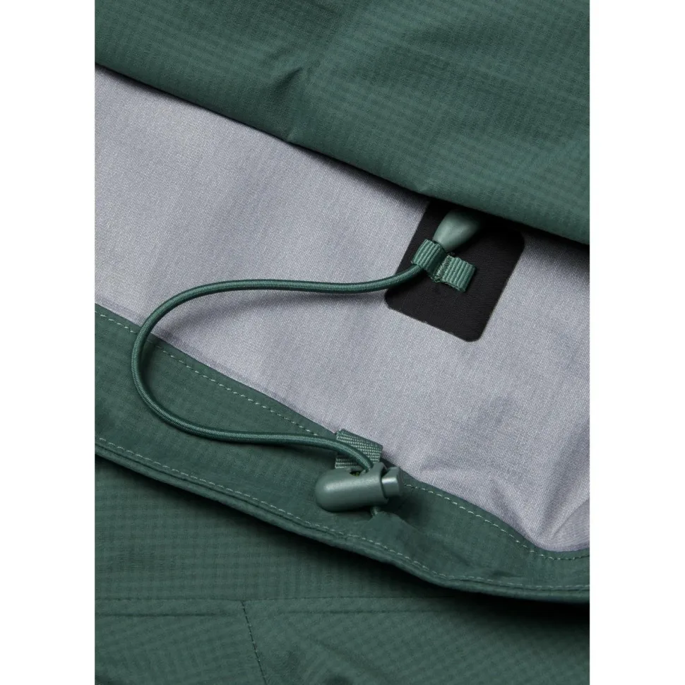 Die Regenjacke besteht aus einem geschmeidigen Polyamid-Material, das sich sehr gut komprimieren lässt. Daher kannst Du sie problemlos im Rucksack verstauen und bei Bedarf schnell wieder hervorholen. Außerdem hat sie zwei praktische Fronttaschen mit Reißverschluss und eine eng anliegende, verstellbare Kapuze, die Deine Haare zuverlässig vor Regen schützt.