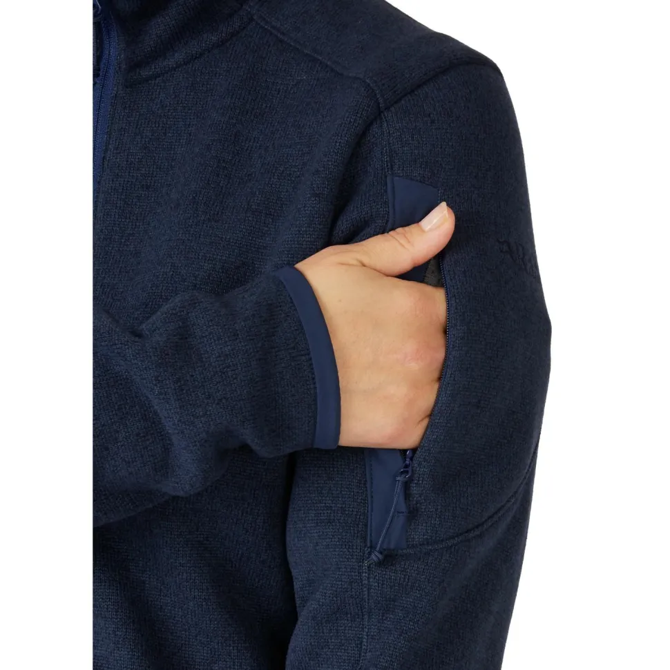 Diese gemütliche Fleecejacke verfügt über einen einfachen Frontreißverschluss mit Kinnschutz, der für dauerhaften Komfort im Gesicht sorgt, wenn er vollständig geschlossen ist. Ein weicher Stehkragen schützt den Hals vor kaltem Wind, ohne unnötig aufzutragen, was das Schichten erleichtert. Eine Reißverschlusstasche am Ärmel und zwei Fronttaschen bieten Platz für wichtige Dinge. Die weiche Stretch-Einfassung an den Bündchen und am Saum sorgt für zusätzlichen Komfort und Haltbarkeit. Hauptsächlich als Midlayer getragen, eignet sich die Women’s Ryvoan Jacket II auch als leichte Außenschicht an trockenen, milden Tagen.