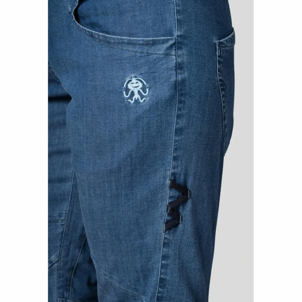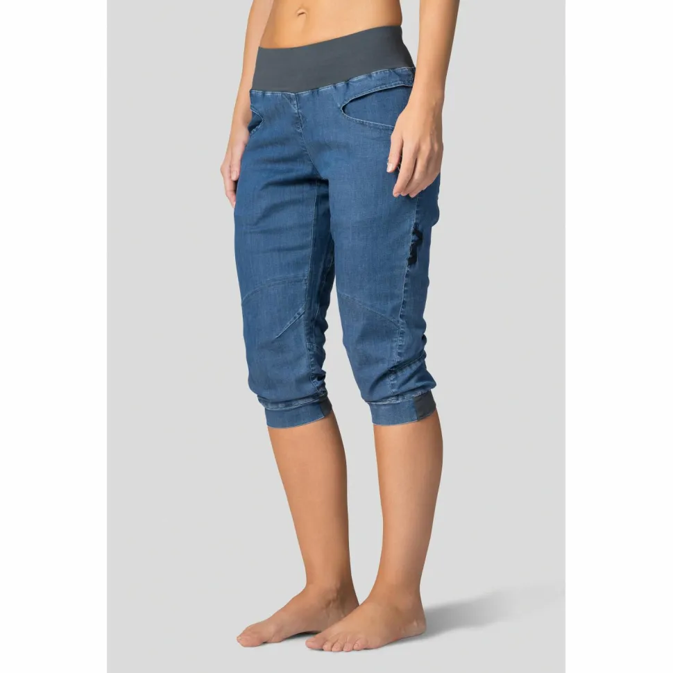 Wenns nicht nur sportlich, sondern auch lässig sein soll, kommt die Women’s Chain Capri von Rafiki ins Spiel. Diese Caprihose reicht bis knapp unter Deine Knie und ist somit auch für vermehrten Felskontakt beim Klettern und Bouldern geeignet. Durch den breiten und elastischen Hüftbund sitzt die Hose immer sicher und drückt auch in Verbindung mit einem Klettergurt nicht. Auch auf Taschen musst Du bei der Women’s Chain Capri nicht verzichten. In zwei Front und zwei Gesäßtaschen lassen sich allerlei Utensilien problemlos verstauen.