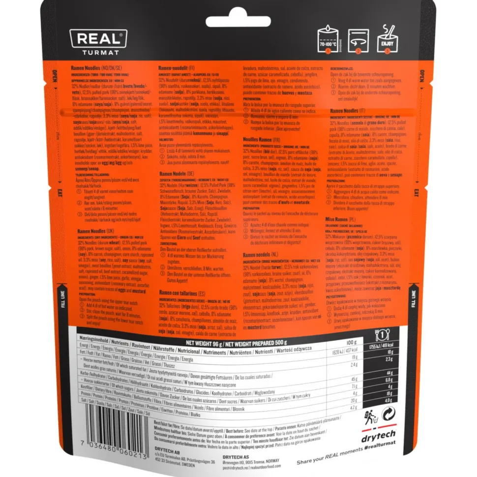 Ramen with Noodles von Real Turmat ist eine aufregende Kombination aus ostasiatischen Aromen. Dieses asiatisch inspirierte Gericht wurde im arktischen Tromsø entwickelt und bietet ein Geschmackserlebnis voller Abenteuer in jedem Bissen. Obwohl Ramen traditionell eine Suppe ist, ist dieses Gericht etwas reichhaltiger gemacht, um das gleiche Energieniveau wie andere Real Turmat Eintöpfe und Abendgerichte zu bieten.