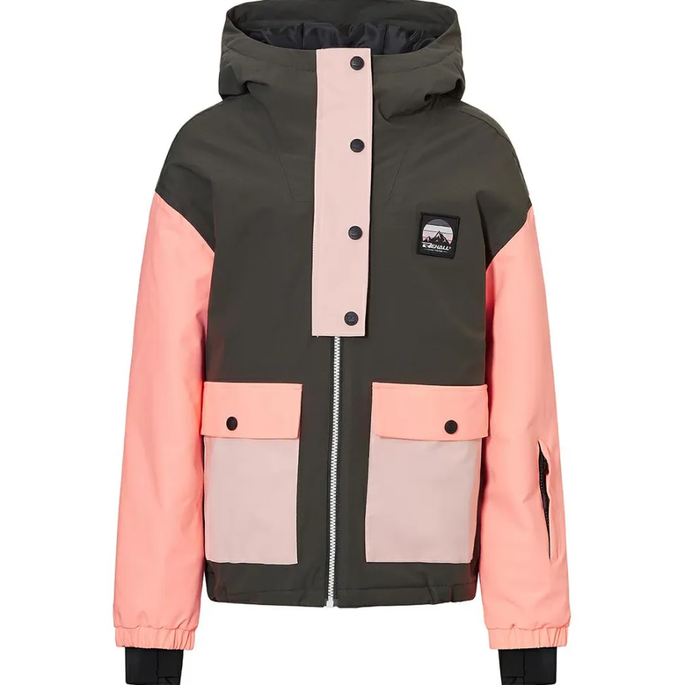 Die Hardshelljacke begeistert durch ihre markante Farbkombination und die beiden aufgesetzten Fronttaschen mit Abdeckklappen. Außerdem ergänzt eine praktische Liftpasstasche am Ärmel das funktionelle Design. Auch ein Schneefang ist bereits fest in die Ski und Snowboardjacke von Rehall integriert.