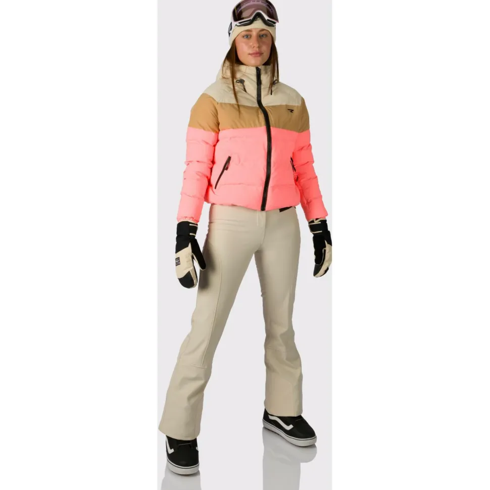 Rehall stattet die wasserdichte und gut isolierte Women’s Nady Skijacke zusätzlich mit einer wetterfesten Kapuze und einem hohen Kragen aus. Der durchgehende Frontreißverschluss mündet komfortabel in einen Kinnschutz und die Kapuze lässt sich per Kordelzug individuell anpassen. Außerdem ergänzen elastische Innenbündchen und praktischen Fronttaschen mit Reißverschluss die Ski- und Winterjacke. Liftpasstasche und Daumenschlaufen machen die Skijacke komplett.