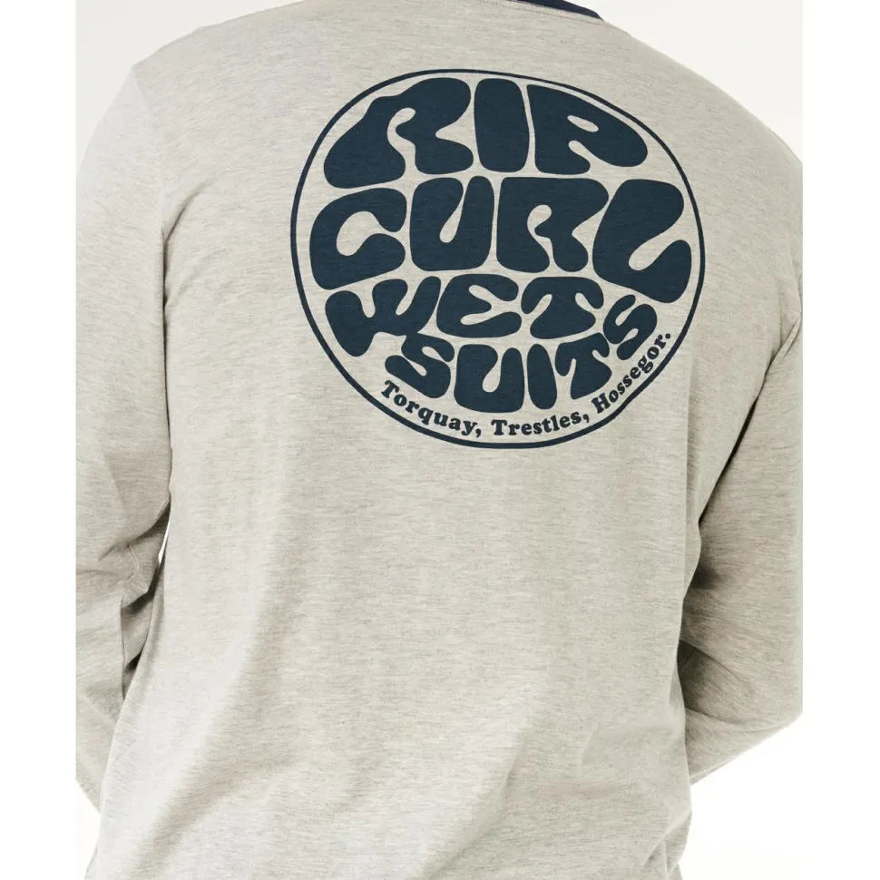 Das Wetsuit Icon L/S Longsleeve von Rip Curl kann Dich in Deinem Alltag oder bei Deinem Surftrip begleiten. Die leichte Baumwolle liegt angenehm weich auf der Haut. Mit dem großen Rückenprint siehst Du richtig lässig aus und gibst Deiner Liebe zum Surfen einen Ausdruck. Die Pastellfarben heben die Sommerbräune nach Deinem Urlaub hervor.