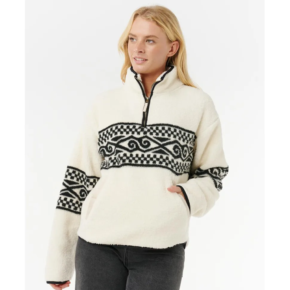 Der Women’s Oceanic Cosmic Kiss Polar von Rip Curl eignet sich für jeden Tag in Deiner Freizeit. Er ist atmungsaktiv und schnelltrocknend. Mit dem halblangen Front-Reißverschluss kannst Du ihn flexibel tragen. Der Stehkragen schmiegt sich angenehm an Deinen Hals an und bietet Dir Wärme. Die beiden Seitentaschen eignen sich hervorragend, um Deine Hände zu wärmen. Mit dem Boho-Look fällt er sofort ins Auge. Du kannst den Fleecepullover zur Jeans, aber auch zur Freizeithose kombinieren.
