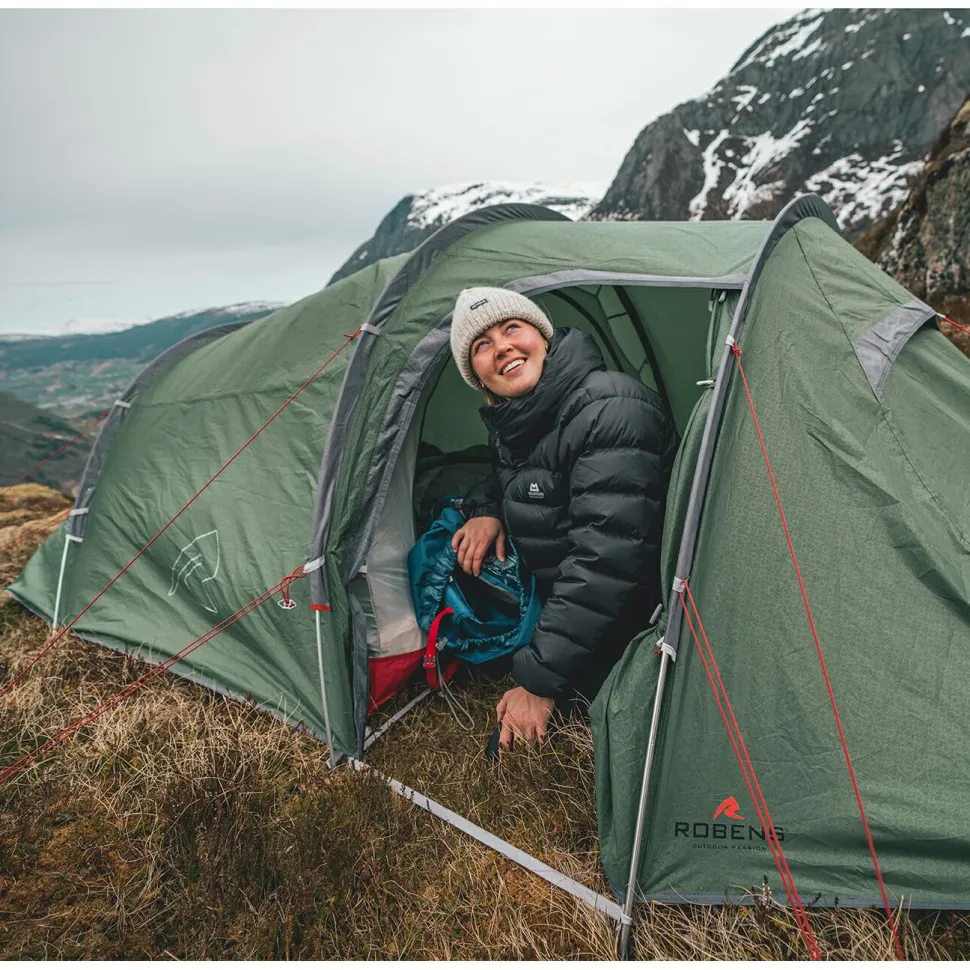 Rundum zuverlässiger Wetterschutz und jede Menge Platz zum Entspannen: das Sage 3 Pro von Robens zeigt, wie komfortabel das Leben draußen sein kann! Das robuste Tunnelzelt kommt mit einem leichten Überzelt aus HydroTex Core Ripstop-Gewebe. Dessen verlässliche Wasserdichtigkeit wird durch getapte Nähte optimiert. Zugleich ist das Gewebe langlebig, abriebfest und feuerhemmend, weshalb auch ein Funkenflug vom Lagerfeuer kein Beinbruch ist.