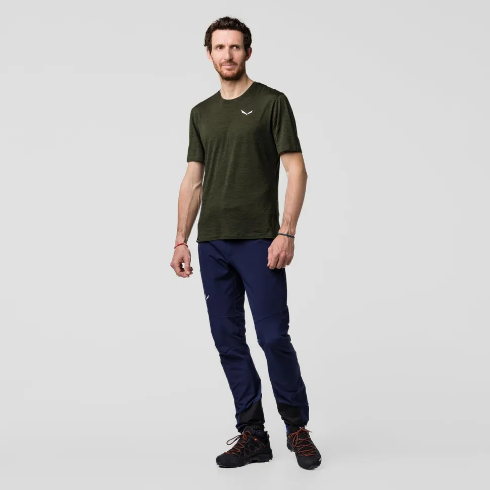 Zum Teil kommen recycelte Fasern zum Einsatz und die Herstellung ist bluesign approved. Die Tourenhose ist aus Durastretch Funktionsgewebe hergestellt. Das elastische 4-Wege Stretchgewebe passt sich bei jeder Bewegung an Deine Beine an. Durch das stark windabweisende Gewebe und die wasserabweisende Imprägnierung ist die Salewa Agner Orval 3 DST Pants die erste Wahl für Deine nächste Bergtour.