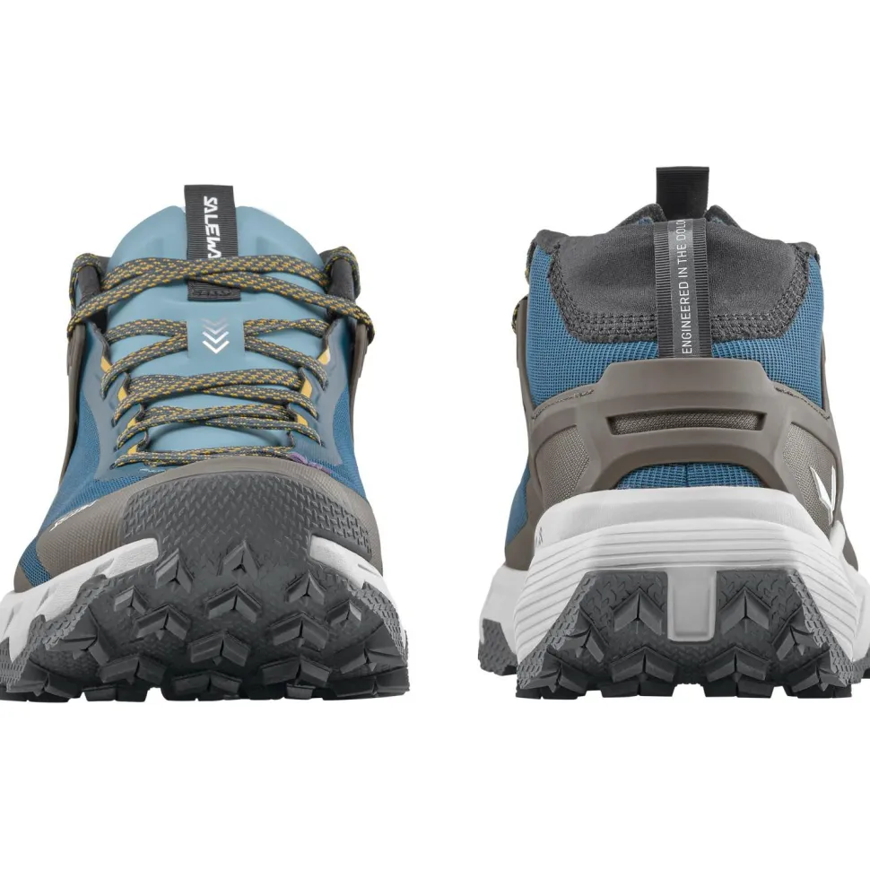 Um zu verhindern, dass es im Inneren feucht wird, ist eine wasserdichte Membran integriert. Atmungsaktive Eigenschaften befördern zudem Feuchtigkeit von Innen nach Außen. Für die Reduzierung des ökologischen Fußabdrucks verwendet Salewa nur PFC-freie Materialien. Eine weiche und bequeme Zwischensohle macht direkt nach dem Hineinschlüpfen Spaß und sorgt für einen gemütlichen Tragekomfort auf den verschiedensten Wanderwegen.