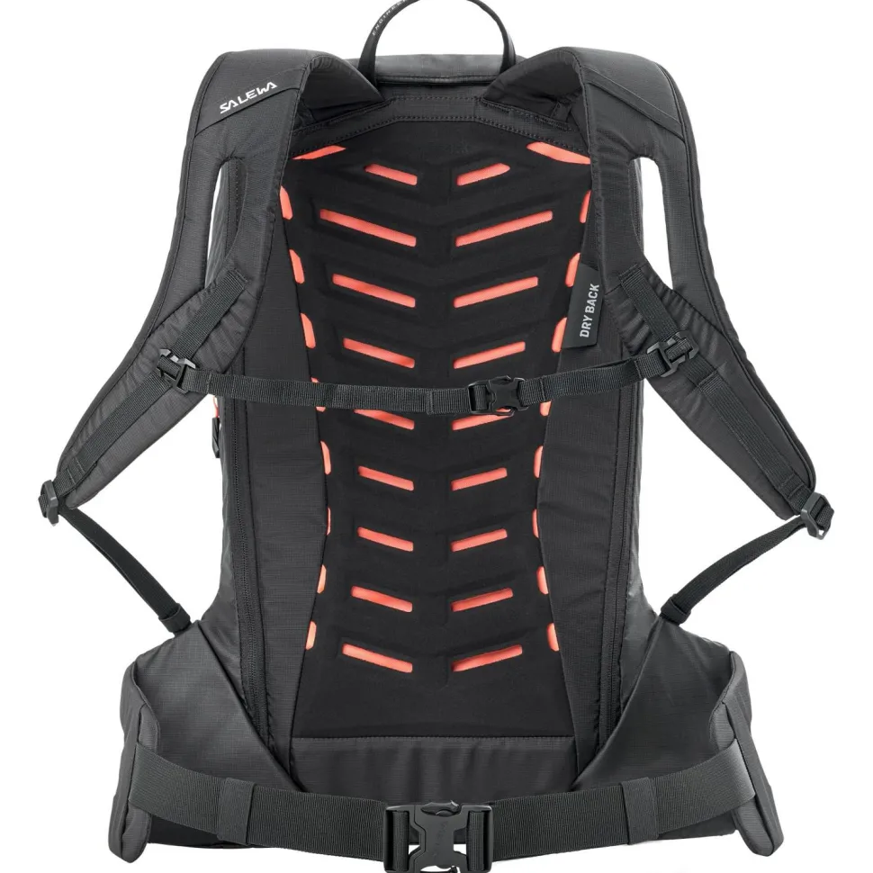 Salewa stattet den Skirucksack mit Tragegriff, gepolsterten Schultergurten, breitem Hüftgurt und verstellbarem Brustgurt aus. Der durchgehende Reißverschluss auf der Rückseite macht das Be- und Entladen besonders schnell und einfach. Beim Skifahren und auf Skitour überzeugt der sportliche Rucksack durch niedriges Gewicht, optimales Volumen und eine robuste Verarbeitung mit 210D Nylon und 330D Ripstop Nylon.