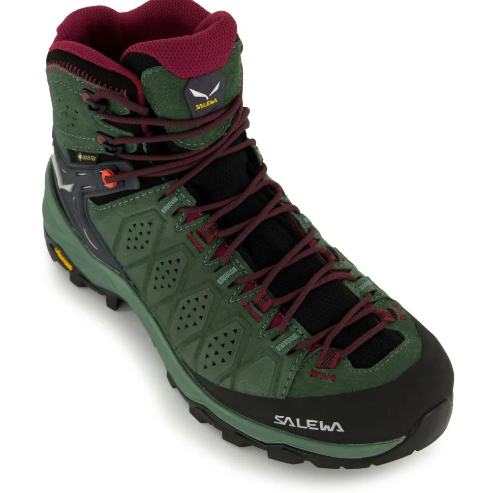 Eine anpassbare Schnürung mit Zughaken und der flexible Schaft sorgen für eine präzise Passform im Schuh. Eine mittel steife Innensohle aus Polyamid und die Vibram Alpine Hiking Gummimischung der Außensohle sorgt auf allen Untergründen für optimale Griffigkeit mit den Women’s Alp Trainer 2 Mid GTX Wanderschuhen von Salewa.
