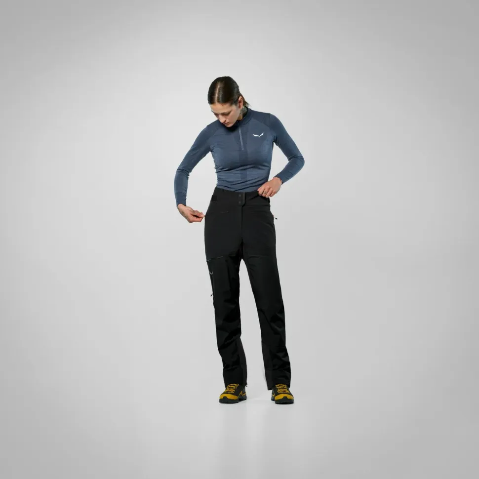 Mit der Women’s Ortles DST/SW Pants von Salewa bist Du bereit für anspruchsvolle Touren im Fels, Schnee und Eis. Das dreilagige Stormwall-Material schützt Dich zuverlässig vor Wind, Regen und Schnee, während es gleichzeitig angenehm wärmt. Die atmungsaktiven Durastretch-Einsätze sorgen dafür, dass Du auch bei intensiven Aufstiegen ein gutes Körperklima behältst.