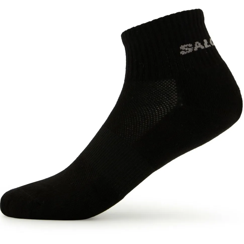 Du suchst nach kurzen Socken für den Alltag? Dann sind die Evasion Ankle 2-Pack von Salomon genau die richtige Wahl! Die Freizeitsocken bestehen zu 75 % aus Baumwolle. Dadurch sind sie sehr bequem und bieten Dir mit der extra gepolsterten Sohle den ganzen Tag über tollen Tragekomfort. Dank Kunstfaseranteil kommt auch die Funktionalität bei diesen Socken nicht zu kurz. So wird bei sportlichen Aktivitäten im Alltag ein guter Feuchtigkeitsaustausch gewährleistet.