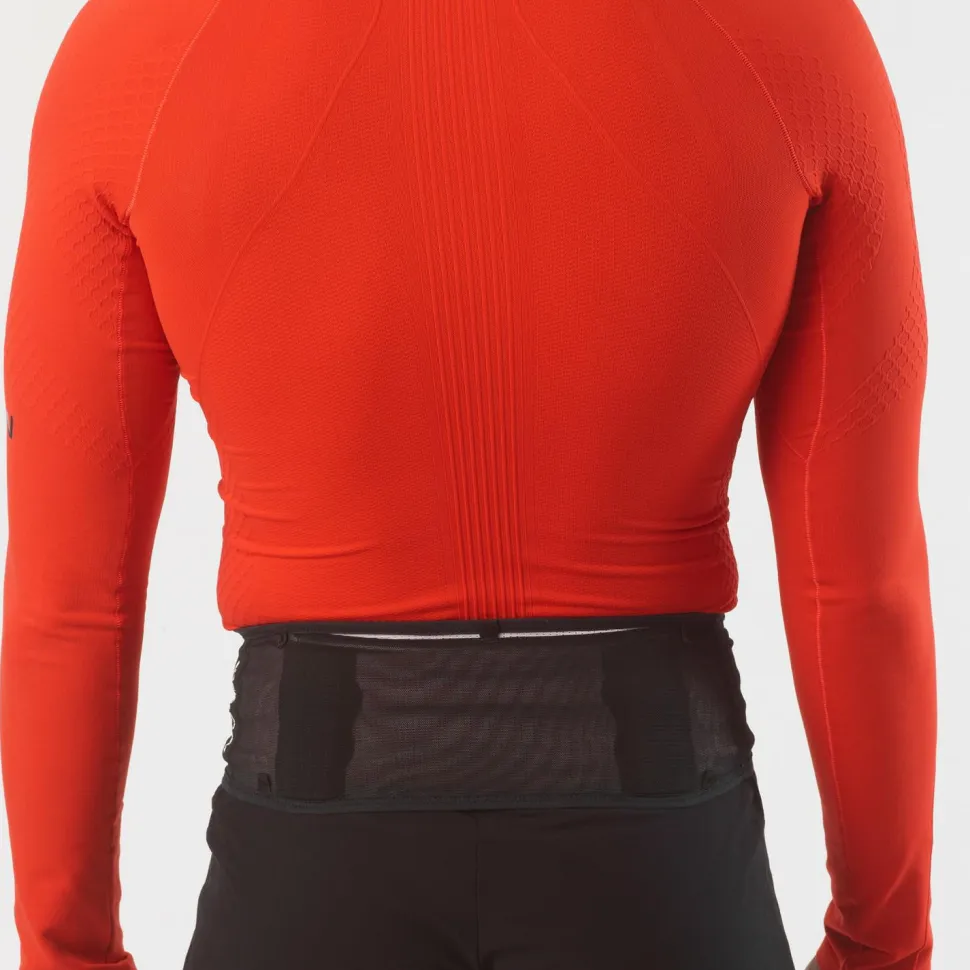Der S/LAB Belt von Salomon ist ein körpernaher Trinkgürtel, der speziell für die Anforderungen beim Trailrunning entwickelt wurde. Er besteht aus ultraleichtem, atmungsaktivem und hochelastischem Material und sitzt daher sicher und bequem auf den Hüften. In den clever platzierten Taschen lassen sich Trinkflaschen und Basics griffbereit verstauen. Zwei seitliche Mesh-Taschen, eine Reißverschlusstasche und eine erweiterbare Mesh-Tasche bieten ausreichend Stauraum für alles, was du auf mittellangen Strecken benötigst.