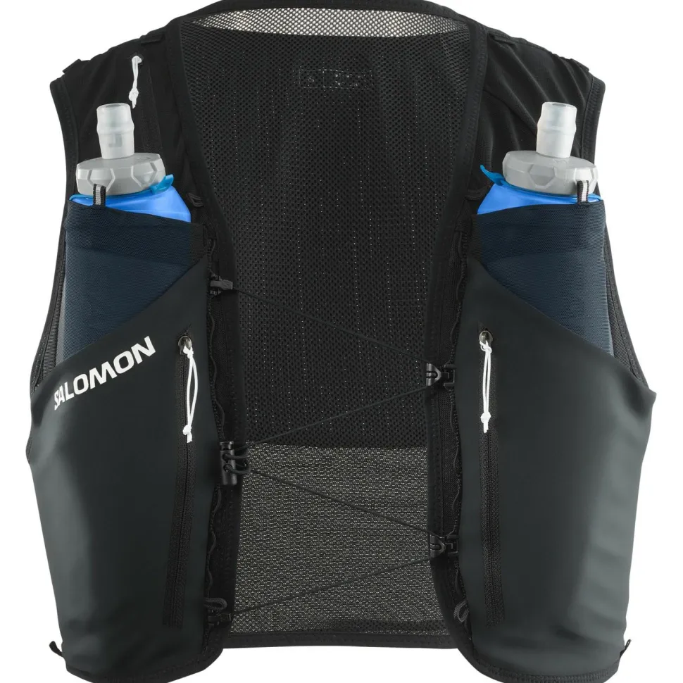 Hast du etwas weniger Gepäck dabei, dann ist der Trailrunningrucksack ADV Skin Cross Season Race Flag von Salomon der ideale Partner! Sein Material ist leicht, robust und wasserabweisend. Die innovative Brustgurt-Konstruktion ermöglicht ein schnelles Verstellen und Befestigen des Rucksacks. Das Tragesystem sitzt bequem wie eine Weste, ist atmungsaktiv und wackelt nicht. Zahlreiche kleine Taschen bieten Platz für Riegel und Co. Damit hast Du alles sofort griffbereit!