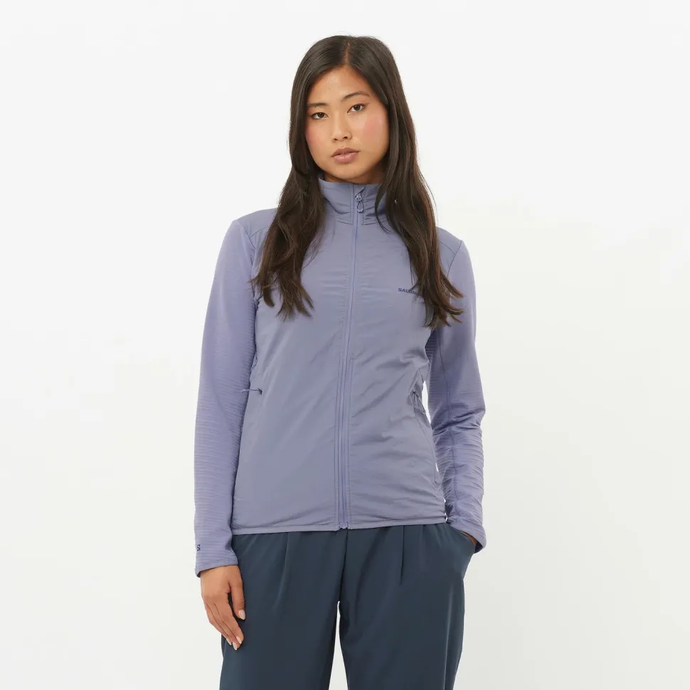 Mit der Salomon Women’s Essential Lightwarm Hybrid Fleecejacke bist Du bestens gerüstet für Deine Outdoor-Einsätze. Die zwei Reißverschluss-Fronttaschen bieten sicheren Stauraum für kleine Gegenstände, die Du schnell zur Hand haben möchtest. Mit einem Gewicht von nur 252 Gramm ist die Jacke ein echtes Leichtgewicht und lässt sich problemlos transportieren – ideal für längere Touren, bei denen jedes Gramm zählt.