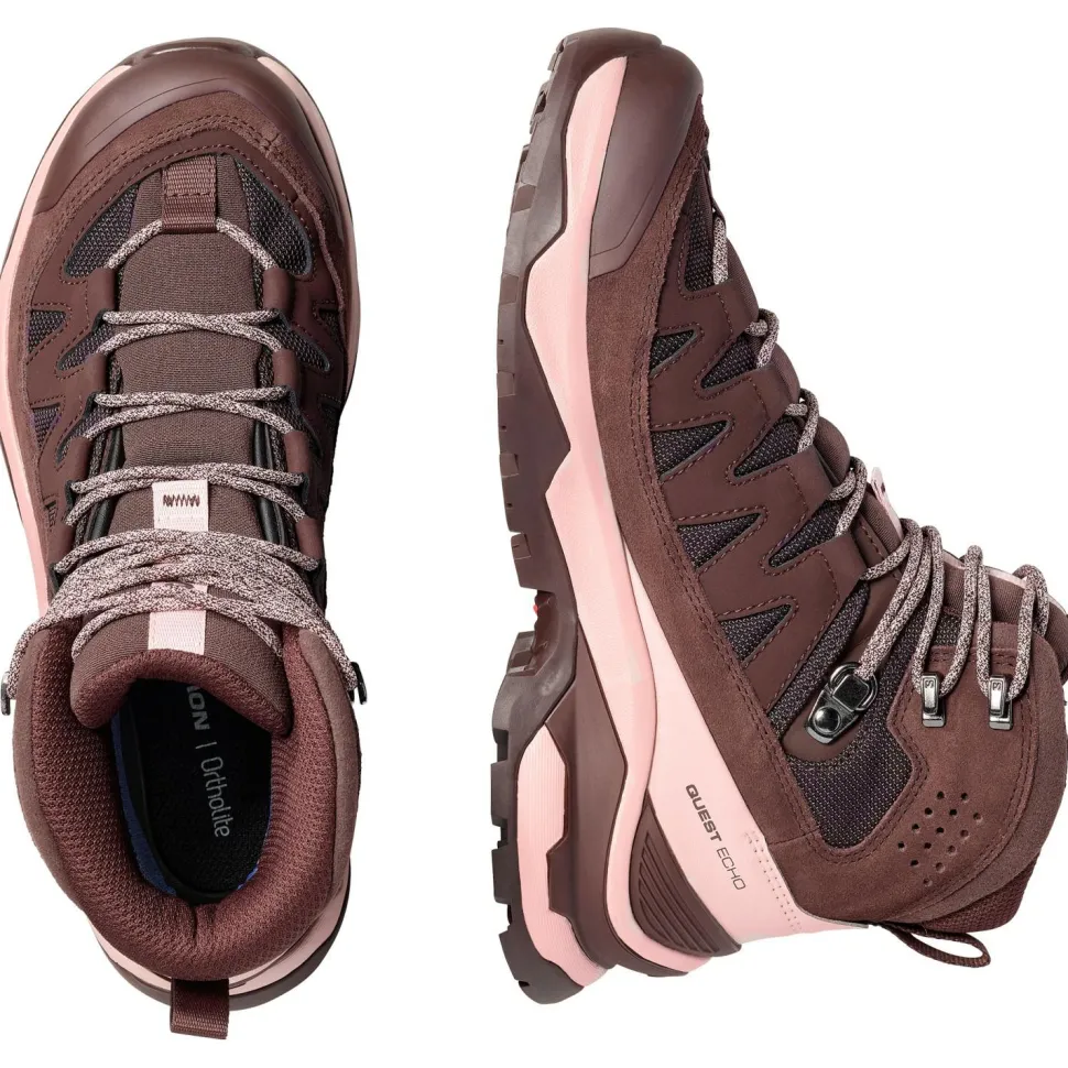 Die Salomon Women’s Quest Echo GORE-TEX Wanderschuhe begleiten Dich zuverlässig auf anspruchsvollen Wanderungen. Dank der GORE-TEX-Membran bleiben Deine Füße auch bei Regen oder nassem Untergrund trocken, während das atmungsaktive Material für ein angenehmes Klima sorgt. Die OrthoLite-Einlegesohle leitet Feuchtigkeit ab und passt sich Deinem Fuß an, sodass Du auch auf langen Touren Komfort spürst. Das leichte, synthetische Obermaterial unterstützt Dich dabei, unbeschwert unterwegs zu sein – ideal für ausgedehnte Tagestouren in den Bergen.