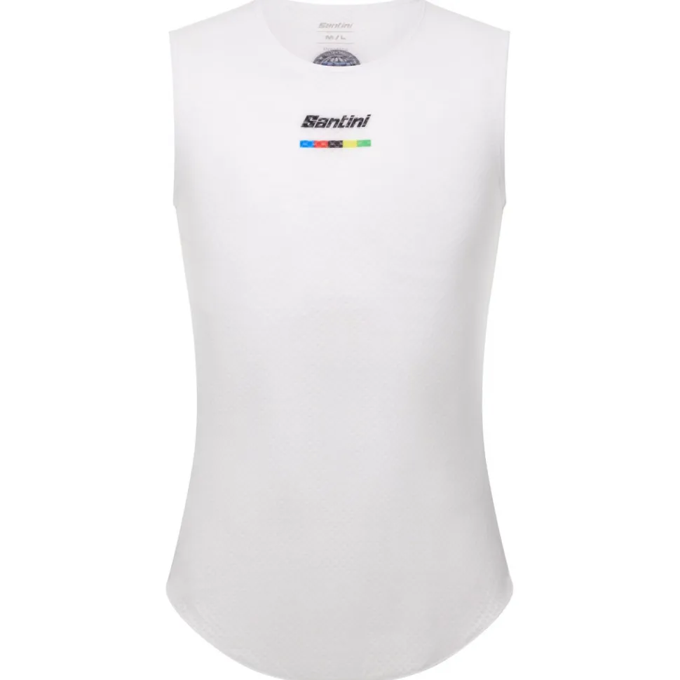 Elegant und funktionell präsentiert sich das UCI World Champion Baselayer Radunterhemd im weltmeisterlichen Look. Das ärmellose Shirt ist dafür mit einem kleinen Streifen in Regenbogenfarben und darüber mit einem mittigen Santini Logo verziert. Das atmungsaktive und schnelltrocknende Radunterhemd besteht aus Polyester und Elasthan. So ist es pflegeleicht und ausgesprochen bewegungsfreundlich. Das Shirt trägt sich perfekt als Baselayer unter dem Radtrikot.