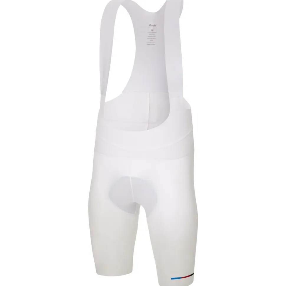 Mit hoher Kompression und einem angenehm weichen Tragegefühl sorgt die UCI World Champion Bib Shorts Mondo Radhose von Santini für sportliche Performance auf dem Rennrad. Die Bib Shorts ist mit einem GIT-evo Sitzpolster mit dämpfendem Gel ausgestattet und garantiert bei langen und intensiven Fahrten tollen Tragekomfort. Die Träger aus leichtem Mesh-Gewebe sind sehr atmungsaktiv und lassen die Feuchtigkeit vom Körper schnell entweichen. Das weltmeisterliche Design wird durch dezente Verzierungen in Regenbogenfarben ergänzt. Die ergonomische Mischung aus Polyamid und Elasthan bietet tolle Beweglichkeit beim Radfahren.