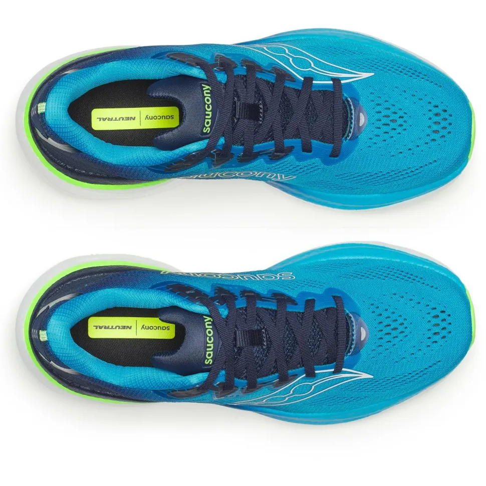 Mit dem Ride 19 von Saucony startest Du entspannt in Deinen Lauftag. Die Kombination aus der PWRRUN+ Zwischensohle und einer Sprengung von 8 Millimetern sorgt für ein angenehm weiches, aber dennoch dynamisches Laufgefühl. Das TPU-Material der Dämpfung gibt Dir bei jedem Schritt spürbar Energie zurück und schont dabei Deine Gelenke – ideal für längere Strecken oder schnelle Einheiten auf Asphalt. Die hohe Stapelhöhe von 36 Millimetern bietet zusätzlichen Schutz, sodass Du Dich voll auf Deinen Lauf konzentrieren kannst.