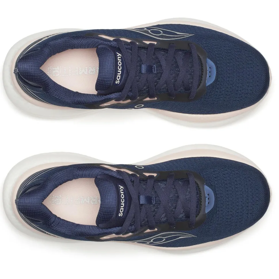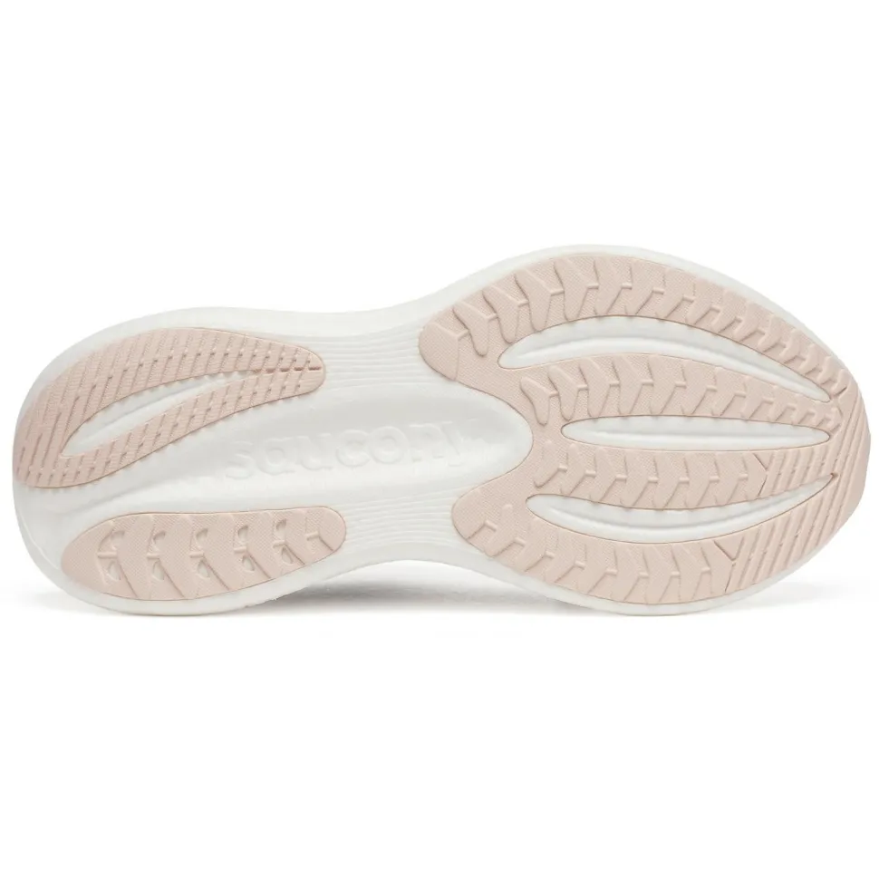 Die Women’s Triumph 23 von Saucony sind mit der innovativen PWRRUN PB-Zwischensohle ausgestattet, die speziell für hohe Geschwindigkeiten und dynamische Läufe entwickelt wurde. Diese Technologie bietet eine beeindruckende Energie-Rückführung von 88 %, was bedeutet, dass bei jedem Schritt ein Großteil der aufgewendeten Energie zurückgegeben wird. Dies führt zu einem besonders effizienten und kraftvollen Lauf, ideal für Läuferinnen, die ihre persönliche Bestzeit erreichen möchten. Die gut gedämpfte Sohle sorgt zudem für Komfort bei längeren Läufen und reduziert die Belastung auf die Gelenke, was besonders auf Asphalt von Vorteil ist.